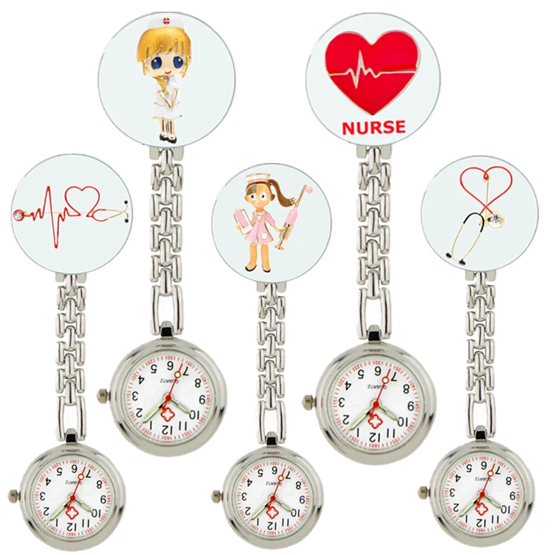 Name: Relojes de bolsillo con dibujos animados de enfermera, estetoscopio médico, corazón, aleación de vidrio, cabujón, clip de moda, hospital, regalo médico
